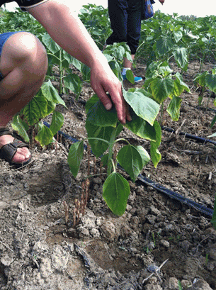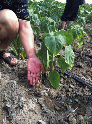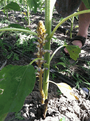 圖1: 食葵列當(dāng)寄生在向日葵植株上 圖2 :仔細(xì)觀察產(chǎn)品對列當(dāng)?shù)姆乐?/span>效果