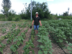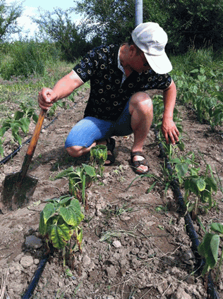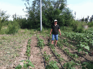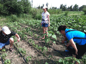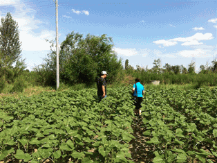 圖7:仔細(xì)觀察列當(dāng)危害 圖8:劉總在對照組地里思考著