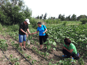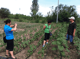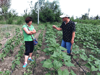 圖9:三位專家在地里察看 圖10:科技特派員認(rèn)真聽取公司劉總講解列當(dāng)?shù)奈:头乐未胧?/span>