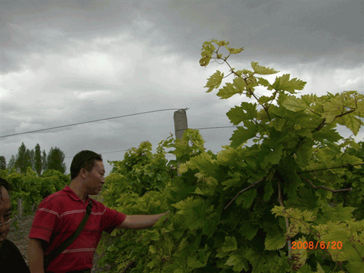 圖3:技術員察看葡萄長勢
