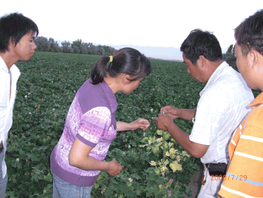 圖4:技術員在仔細察看棉桃