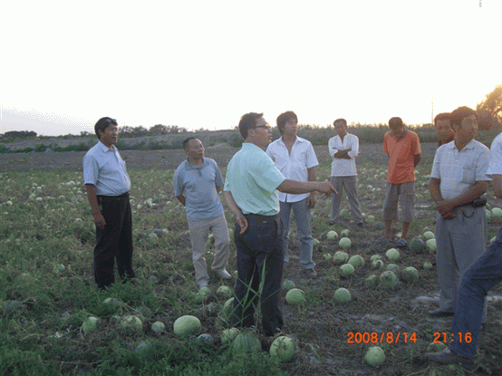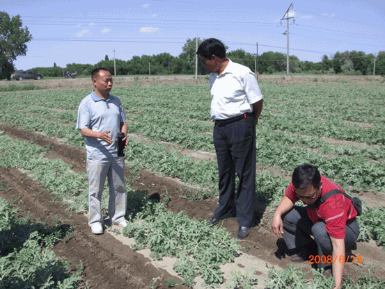 2008年,公司土壤改良劑在新疆兵團(tuán)124團(tuán)9連打瓜地里的試驗示范圖片