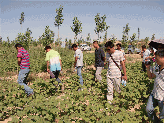 2011年“施地佳”鹽堿土壤改良劑在新疆兵團(tuán)農(nóng)八師134團(tuán)防風(fēng)林帶間種棉花試驗(yàn)示范現(xiàn)場會(組圖)
