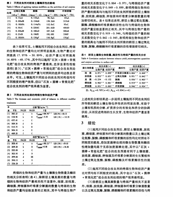不同土壤改良劑對土壤生化性質(zhì)與烤煙產(chǎn)量的影響