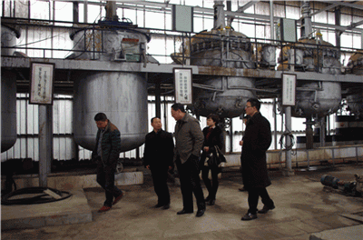 圖為:李主任參觀改良劑生產(chǎn)車間