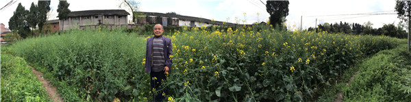 圖為:姚永訓(xùn)站在自己另一塊油菜地里