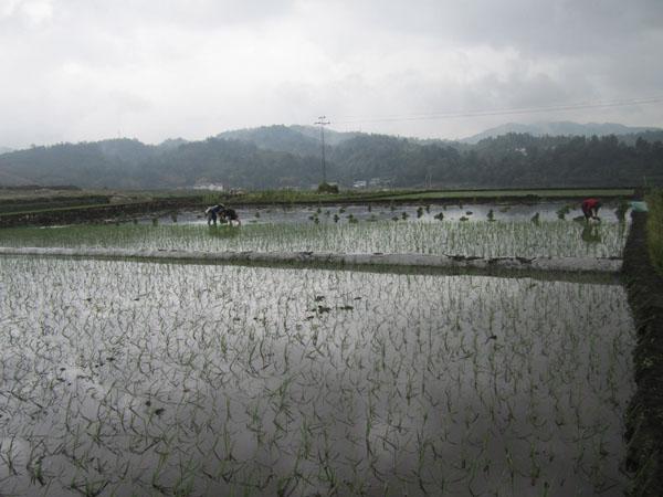 龍陵縣土肥站續(xù)農(nóng)業(yè)部2013年下達土壤調(diào)理劑“施地佳”在水稻上的2處理3重復試驗效果基礎(chǔ)上,我站與龍新鄉(xiāng)農(nóng)科站在勐冒村磚廠背后舉辦2014年水稻施用“施地佳”應(yīng)用效果示范項目工作,示范設(shè)2個處理(處理1:習慣施肥;處理2習慣施肥+施地佳土壤調(diào)理劑),不設(shè)重復,處理間用薄膜隔埂,各處理單排單灌,避免串排灌,其他農(nóng)事活動一致。示范田于6月4日取土后并畝用“施地佳”2千克拌20倍細土均勻撒施地表后翻犁耙勻,6月5日示范田移栽工作結(jié)束并進行多點定苗,便于以后秧苗動態(tài)觀察記載工作。
