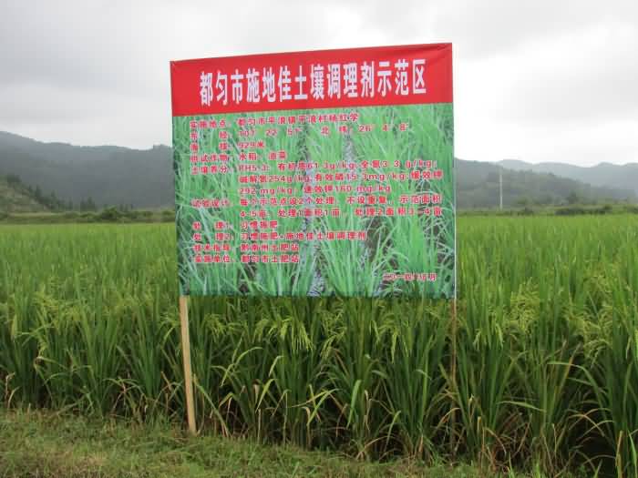 2014年農(nóng)業(yè)部全國農(nóng)技推廣服務中心安排在貴州省都勻市土肥站進行酸化土壤調(diào)理的試驗,試驗結(jié)果顯示“施地佳”酸化土壤調(diào)理劑第一年在當?shù)刂饕Z食作物水稻上的試驗成功,實驗結(jié)果土壤酸度降低,土壤容重降低,稻谷增產(chǎn)幅度達到6%以上,我們的試驗計劃是三年定點示范,為我們的土壤改良總結(jié)一套成功的可行的實施方案。