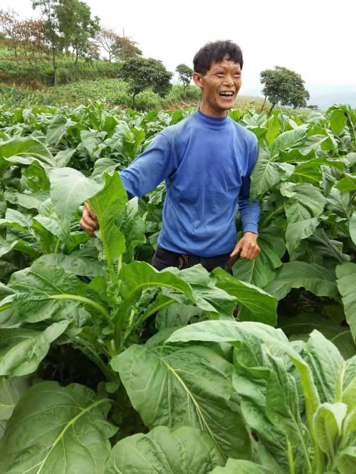 圖5:貴州道真縣河口鎮(zhèn)張倫飛看著自己今年50畝煙葉地煙葉長得這么好,笑得合不攏嘴了