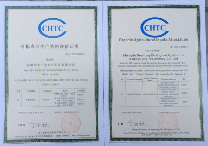 今年9月初,成都華宏生態(tài)農(nóng)業(yè)科技有限公司通過對(duì)國家有機(jī)農(nóng)產(chǎn)品認(rèn)證的標(biāo)準(zhǔn)的自我衡量,向國家認(rèn)證權(quán)威機(jī)構(gòu)申請(qǐng),經(jīng)過嚴(yán)格的認(rèn)證考核,獲得以下三個(gè)產(chǎn)品的有機(jī)認(rèn)證:(1)“助邦”牌生物有機(jī)肥、(2)“神鋤”復(fù)合微生物肥料(液體)、(3)“神鋤”復(fù)合微生物肥料(粉劑),這是我公司長期以來倡導(dǎo)和注重生產(chǎn)綠色產(chǎn)品,保障民眾健康的理念的結(jié)果。