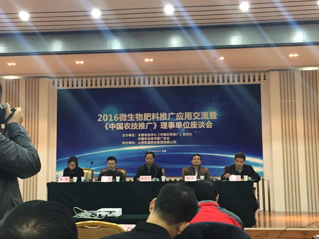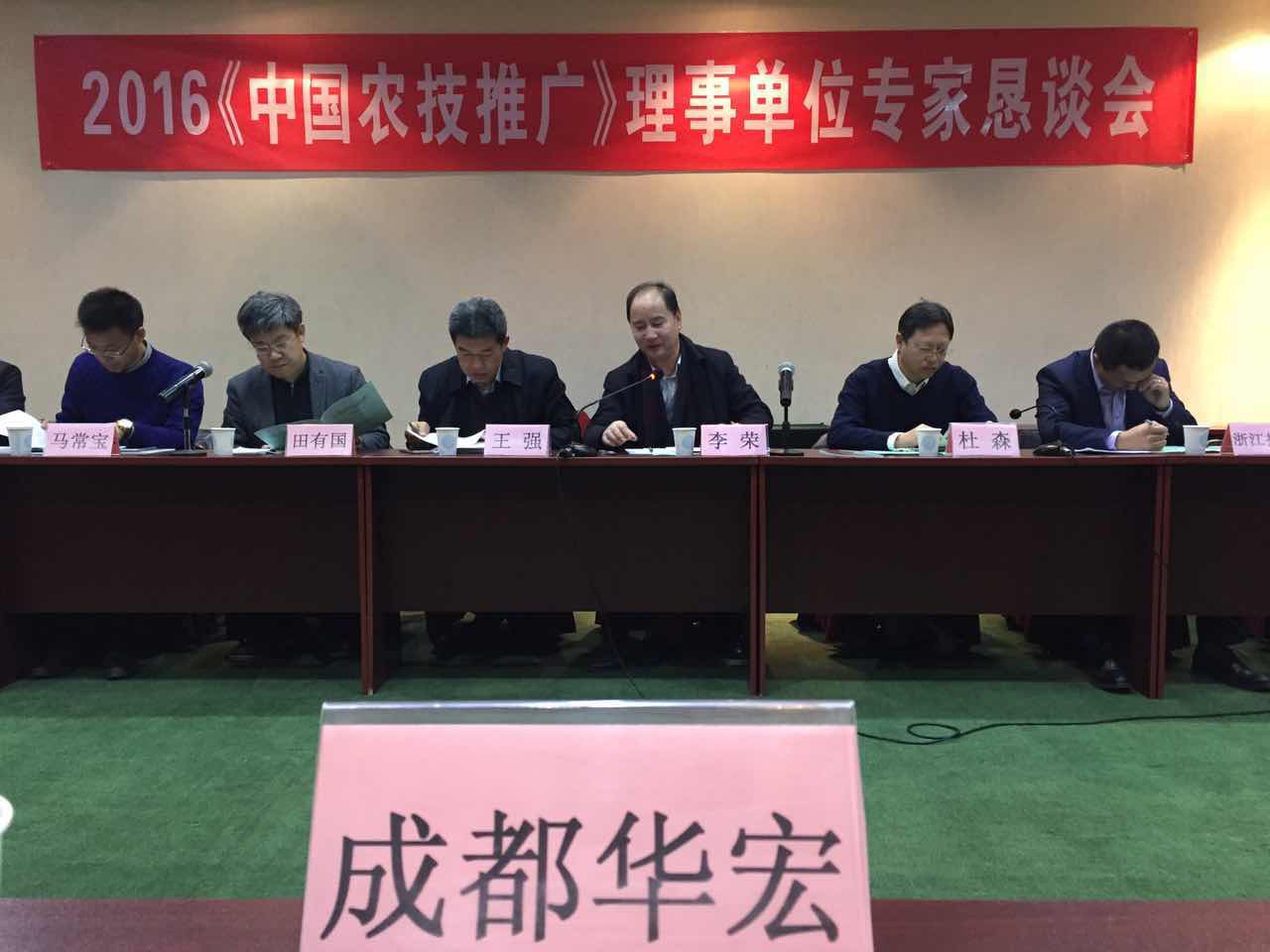 2016年12月3—4日,由全國農(nóng)技推廣中心《中國農(nóng)技推廣》雜志社、中國農(nóng)業(yè)技術(shù)推廣協(xié)會(huì)主辦的“2016微生物肥料推廣應(yīng)用交流暨《中國農(nóng)技推廣》理事單位座談會(huì)在北京召開,來自全國200個(gè)專家、學(xué)者、涉農(nóng)科技企業(yè)代表和各理事單位代表參加了座談會(huì),成都華宏生物科技有限公司楊洋副總經(jīng)理蒞臨座談會(huì)。