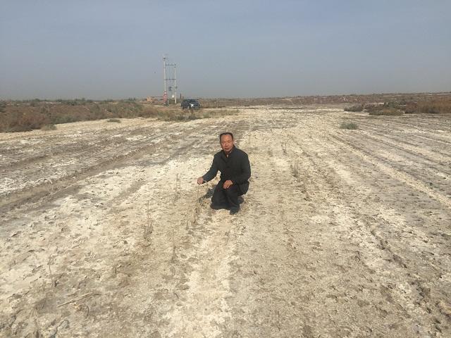 新疆地處歐亞大陸腹地,常年干旱少雨,蒸發(fā)強烈,典型的內陸干旱氣候使得農(nóng)業(yè)生產(chǎn)全部依賴于灌溉,土地鹽堿化十分嚴重。在新疆阿克蘇市溫宿縣古勒阿瓦提鄉(xiāng),當?shù)赜?005年開始開墾鹽堿荒地27000畝以建設農(nóng)場,然而因為惡劣環(huán)境和技術實力的限制,歷經(jīng)十年攻堅,直到2015年依然遙遙無期。這其中,擁有1000畝種植大戶李輝就深受鹽堿荒地的困擾,土地產(chǎn)量始終無法提升。2015年3月,受李輝之邀,在治理土地鹽堿化方面擁有成熟經(jīng)驗的成都華宏生物科技有限公司,由總經(jīng)理李智強、總農(nóng)藝師劉軍、高級農(nóng)藝師楊福勛組成技術團隊,來到李輝所經(jīng)營的示范地現(xiàn)場考察,并商討實施方案。