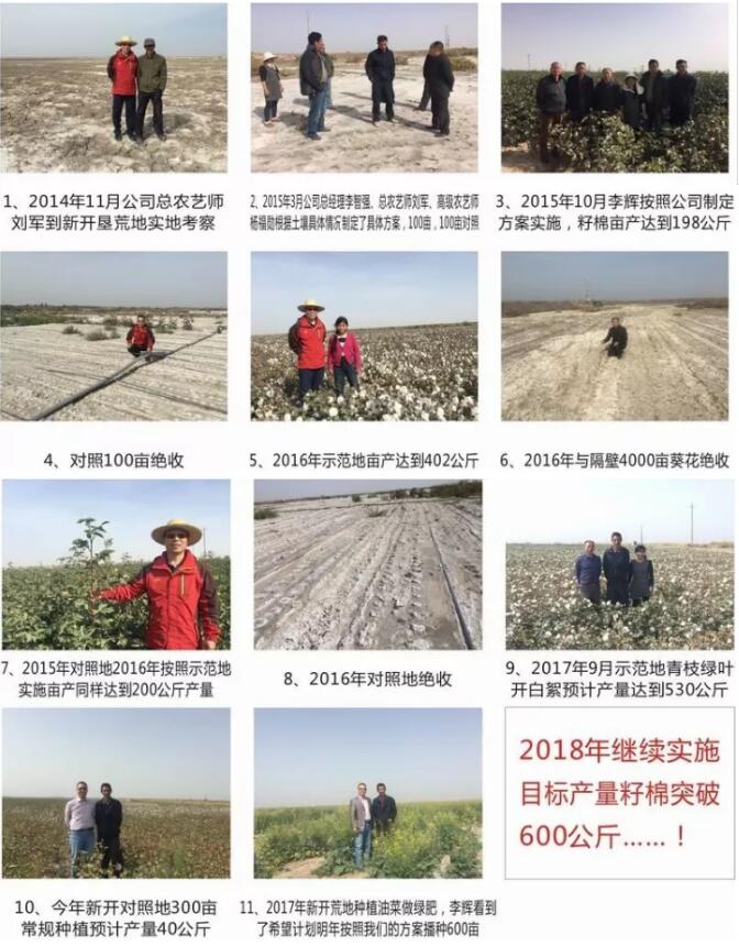 有機(jī)生物改良新開荒鹽堿地,第一年種植棉花畝產(chǎn)200公斤,第二年400公斤、第三年棉花畝產(chǎn)達(dá)500公斤,實(shí)現(xiàn)不花錢成功改良鹽堿地。