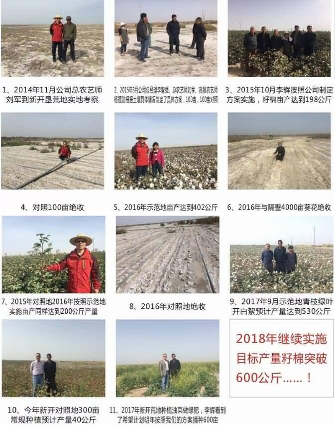 有機(jī)生物改良新開(kāi)荒鹽堿地,第一年種植棉花畝產(chǎn)200公斤,第二年400公斤、第三年棉花畝產(chǎn)達(dá)500公斤,實(shí)現(xiàn)不花錢(qián)成功改良鹽堿地。