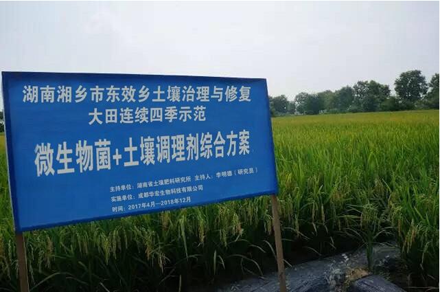 近年來,隨著我國工農(nóng)業(yè)的迅猛發(fā)展,對土壤環(huán)境造成了不同程度的污染,尤其是鎘污染問題已經(jīng)日益嚴峻,首當其沖受到影響的就是農(nóng)業(yè)生產(chǎn)。如何科學有效地根治土壤鎘污染問題,在生物肥技術、土壤治理等領域成果突出的成都華宏生物科技有限公司,與湖南省農(nóng)科院土壤肥料研究所展開深入合作,通過李明德研究員的區(qū)域試驗,以成都華宏生物“神鋤”牌復合微生物肥、“施地佳”土壤調(diào)理劑為產(chǎn)品組合,取得土壤鎘污染治理技術方案的成功突破。