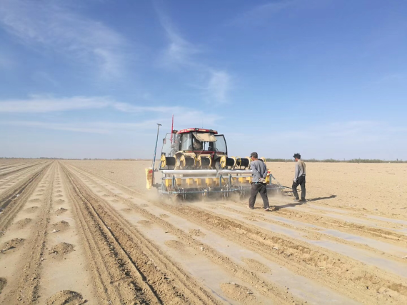 在華宏技術(shù)團(tuán)隊(duì)全力以赴、認(rèn)真負(fù)責(zé)的努力下,1770畝中低產(chǎn)田第一階段播種工作歷時(shí)7天順利完成。期間,新疆兵團(tuán)銀豐現(xiàn)代農(nóng)業(yè)機(jī)械有限公司總經(jīng)理劉興家到播種現(xiàn)場(chǎng)了解播種情況,此次全程播種設(shè)備全部由銀豐現(xiàn)代農(nóng)業(yè)機(jī)械公司提供,通過(guò)前沿技術(shù)與農(nóng)業(yè)科技機(jī)器的完美配合,為第二階段滴水出苗的管理工作打下堅(jiān)實(shí)基礎(chǔ)。成都華宏生物科技有限公司技術(shù)人員表示,有了第一階段的作業(yè)基礎(chǔ),在當(dāng)?shù)卣?、新疆兵團(tuán)各級(jí)領(lǐng)導(dǎo),以及銀豐現(xiàn)代農(nóng)業(yè)機(jī)械有限公司劉總的大力支持和持續(xù)緊密配合下,這1770畝地產(chǎn)地的增產(chǎn)提效工作有了實(shí)力保障。在后續(xù)環(huán)節(jié),成都華宏技術(shù)人員還將繼續(xù)堅(jiān)守在田間地頭,確保產(chǎn)業(yè)項(xiàng)目如期順利完成。