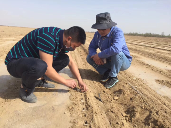 眾所周知,向劣質(zhì)地產(chǎn)土地要產(chǎn)量,其難度不亞于一場(chǎng)攻堅(jiān)戰(zhàn)。特別是新疆兵團(tuán)第六師國(guó)家級(jí)農(nóng)業(yè)高新技術(shù)園區(qū)的這1770畝中低產(chǎn)田,為了盡早實(shí)現(xiàn)土壤調(diào)理,成都華宏公司派出了以總農(nóng)藝師劉軍為核心的精兵強(qiáng)將。特別是在播種階段,總農(nóng)藝師劉軍在播種現(xiàn)場(chǎng)指揮,公司技術(shù)員姚虞、