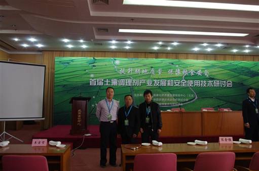 2013年11月28日至29日,首屆全國土壤調(diào)理劑產(chǎn)業(yè)發(fā)展和安全使用技術(shù)論壇在北京召開,我公司因在土壤調(diào)理劑產(chǎn)業(yè)的影響力受到會議邀請,董事長李智強(qiáng)、總農(nóng)藝師劉軍和副總經(jīng)理?xiàng)钛髴?yīng)邀出席。 為了引導(dǎo)土壤調(diào)理劑產(chǎn)業(yè)健康發(fā)展,促進(jìn)土壤調(diào)理劑科學(xué)合理使用,保障我國糧食安全和耕地質(zhì)量,由國家化肥質(zhì)量監(jiān)督檢驗(yàn)中心(北京)、中國農(nóng)學(xué)會農(nóng)業(yè)分析測試分會及中國植物營養(yǎng)與肥料學(xué)會學(xué)術(shù)委員會和農(nóng)化測試專業(yè)委員會聯(lián)合舉辦了這次會議。會議期間,董事長李智強(qiáng)和副總經(jīng)理?xiàng)钛缶臀夜井a(chǎn)品施地佳土壤調(diào)理劑跟與會專家和兄弟企業(yè)深入交流,總農(nóng)藝師劉軍圍繞土壤調(diào)理劑的產(chǎn)業(yè)發(fā)展、產(chǎn)品應(yīng)用效果、使用安全評價(jià)和未來發(fā)展方向等代表公司上臺發(fā)表了專業(yè)演講。